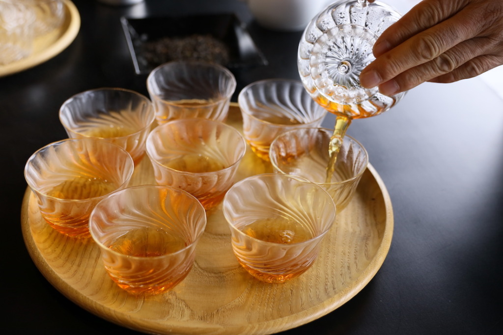 『茶会00』では、「棒茶のスパークリング」をシャンパングラスで楽しんだり