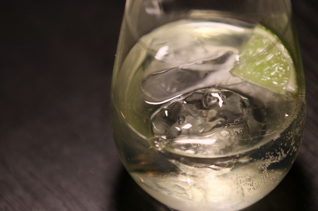 2:[1:3]の割合で、お茶を漬け込んだジンをトニックウォーターで割る