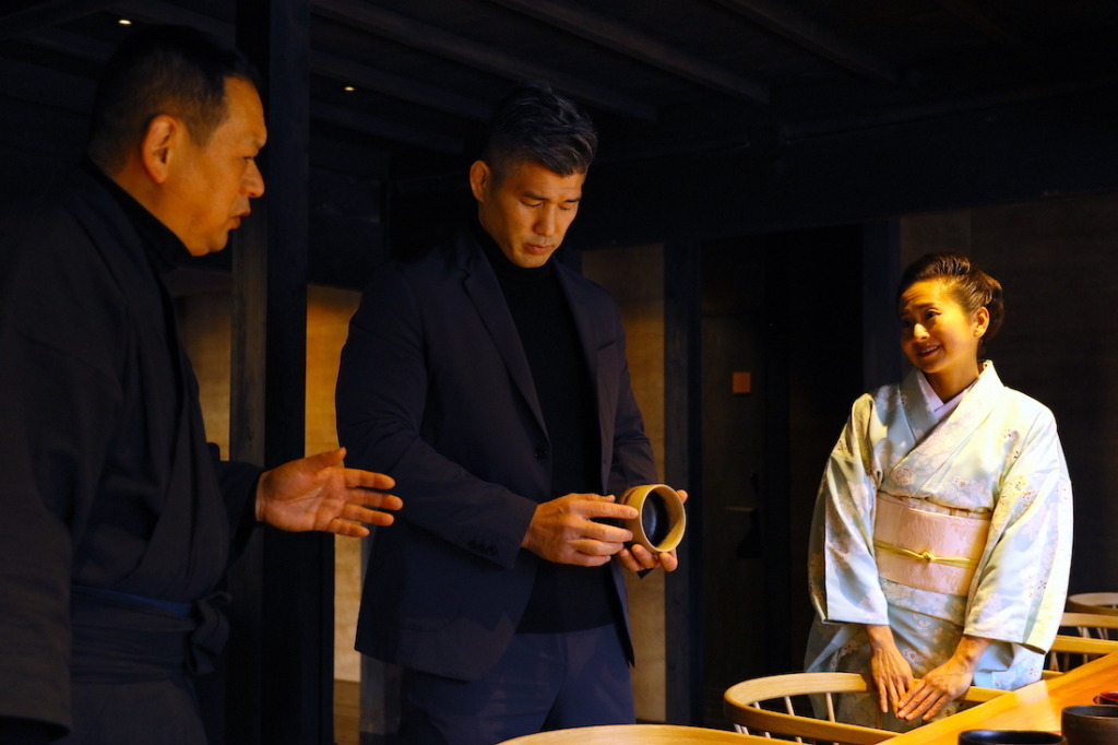 今回は、小椋さんが作った漆器の茶碗で、小堀さんにお抹茶を立てていただくことに。